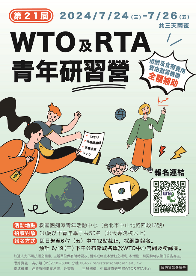 【2024年第二十一屆WTO及RTA青年研習營(2024/07/24~07/26)】